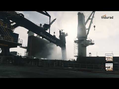 A dust suppression system impaires visitoin of the human operator unloading vessels at at Port of Quebec. Indurad “restores” the operator’s vision using it’s 3D radar technology.